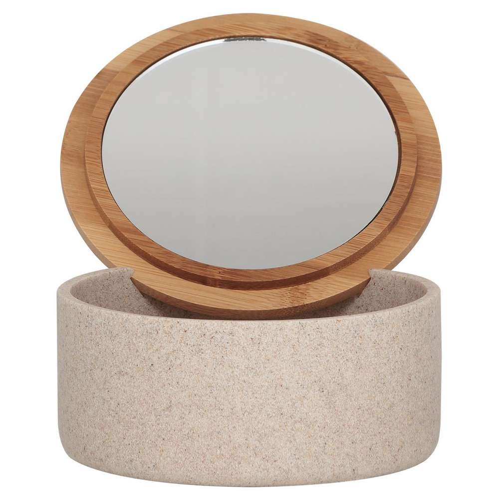 Αυτό το στρογγυλό κουτί κοσμημάτων Grace με καθρέφτη της Sealskin είναι ένα πραγματικό κόσμημα για το ράφι του μπάνιου ή το κομοδίνο. Μπορείτε να αποθηκεύσετε τα κοσμήματά σας σε αυτό το καλαίσθητο δοχείο και όταν το καπάκι τοποθετηθεί στις ειδικές εγκοπές, το κουτί μετατρέπεται σε καθρέφτη μακιγιάζ.