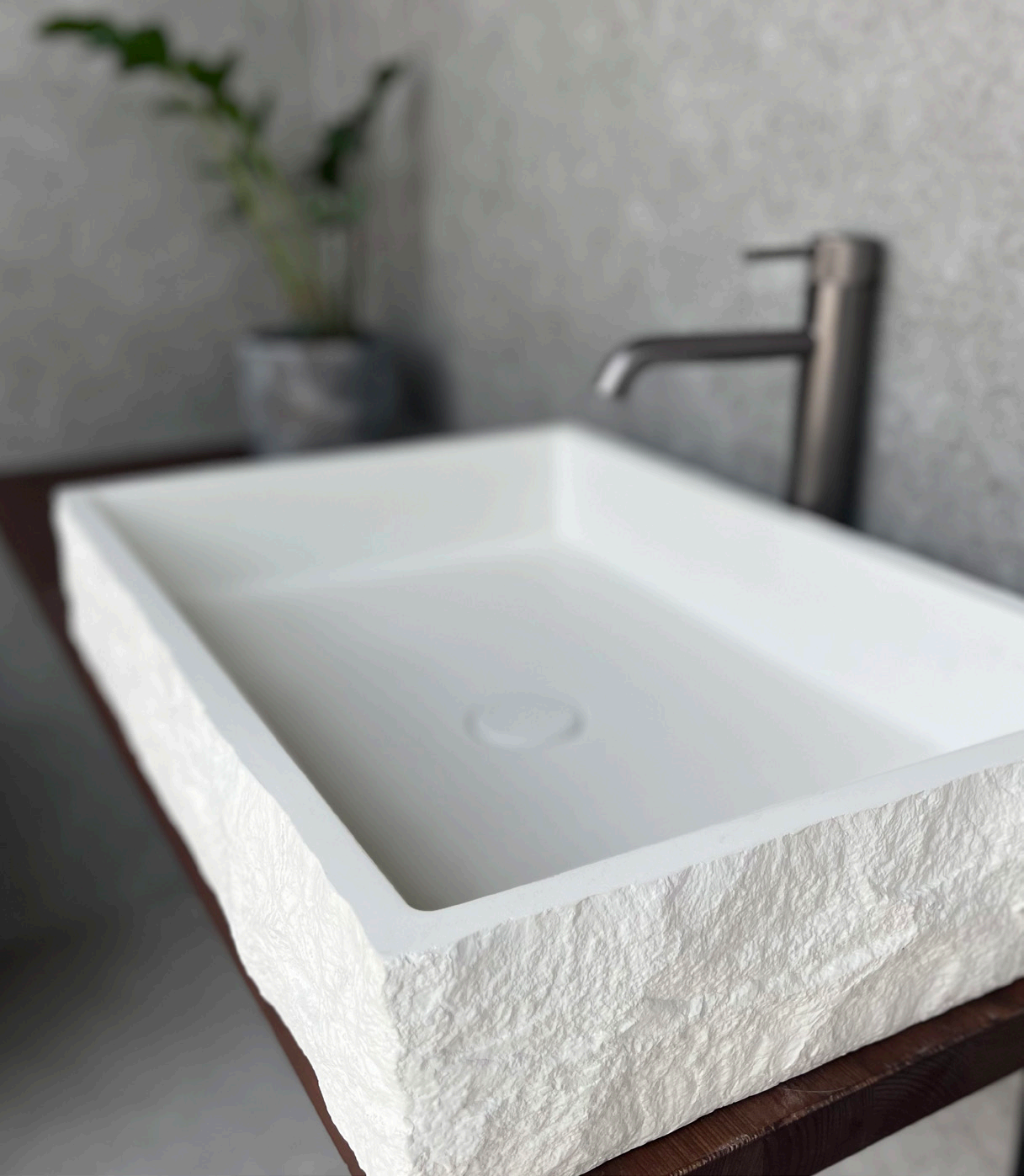 Ο Thalia White είναι ένας κομψός επιτραπέζιος νιπτήρας που συνδυάζει μοντέρνο design με φυσική αισθητική. Η λευκή του απόχρωση και η ιδιαίτερη, αδρή εξωτερική υφή που θυμίζει λαξευμένη πέτρα δημιουργούν ένα εντυπωσιακό αποτέλεσμα, ιδανικό για σύγχρονα, minimal αλλά και spa-style μπάνια. Με διαστάσεις 80×40×12 cm προσφέρει άνετο χώρο χρήσης χωρίς να βαραίνει οπτικά τον πάγκο, καθιστώντας τον εξαιρετική επιλογή τόσο για κύρια όσο και για guest μπάνια. Κατασκευασμένος από ανθεκτικό υλικό υψηλής ποιότητας, εξασφαλίζει αντοχή στον χρόνο και εύκολη συντήρηση. Συνοδεύεται από βαλβίδα στο ίδιο χρώμα με τον νιπτήρα, για απόλυτα αρμονικό και ολοκληρωμένο αισθητικό αποτέλεσμα.